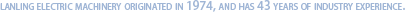 蘭菱機(jī)電 起源于1974年,至今已有44年行業(yè)經(jīng)驗(yàn)。